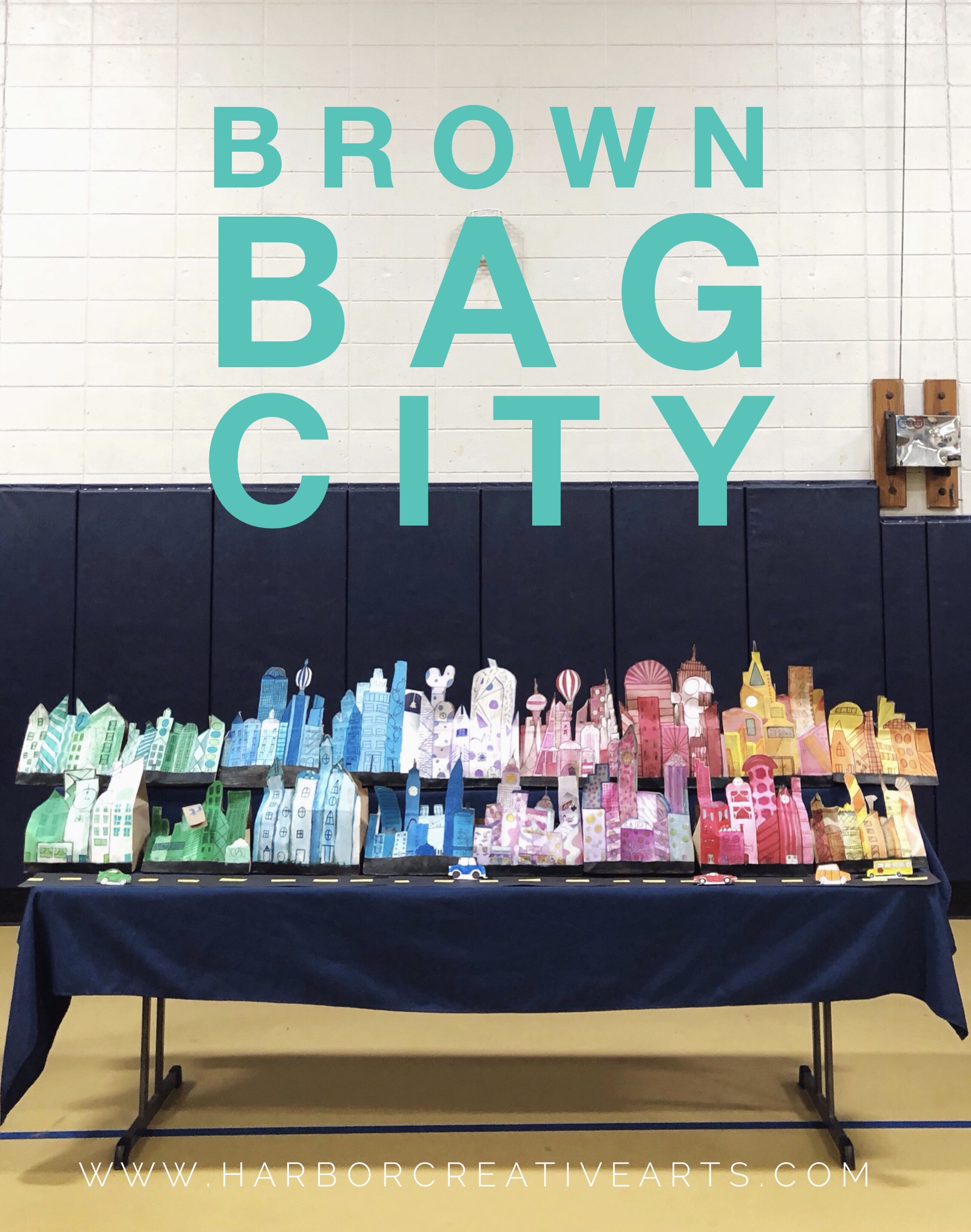 Long ago when I student taught, the teacher I worked with did a lesson where the students turned brown bags into busts of famous portrait paintings. Later, I evolved the standing brown bag sculpture concept into a standing city. I’ve facilitated this lesson with both elementary and middle school students, and also as a professional development workshop for teachers. At one point an entire school hallway housed one long cityscape. This year students were assigned a certain color scheme to work with and in the end we created “Rainbow Road” at our school art show!