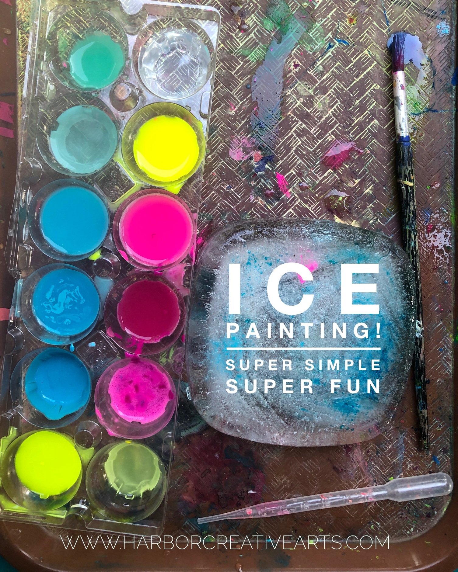 Sprinkling salt on the ice encourages it to melt and make little cracks in the ice that kids find fascinating and the paint gets trapped in.