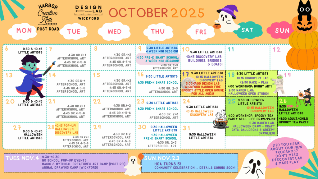 School vacation camps… exciting pop-up art camps for ages 4-12 in December, February, April vacation offer children extended time in the studios.
