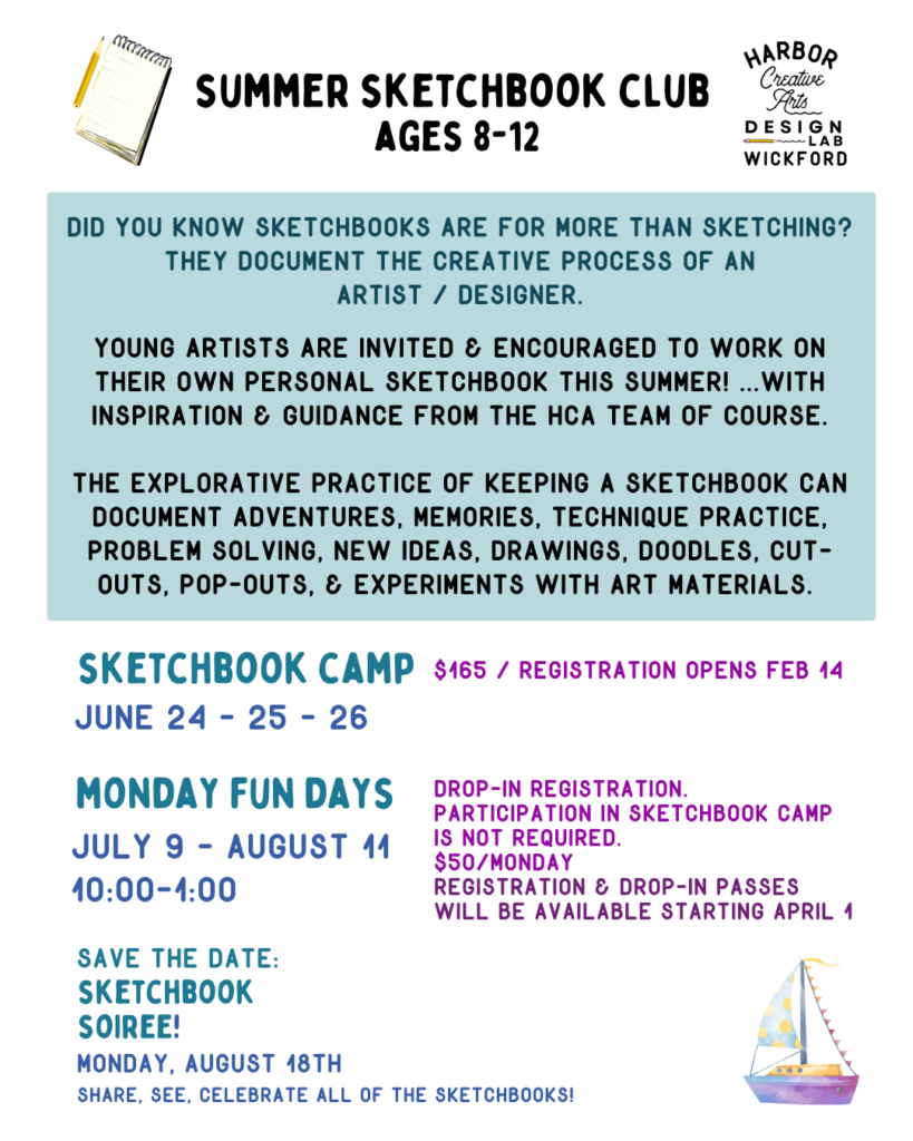 We are now offering exciting specialty art & design camp programs at both 7592 Post Road & on Wickford Harbor.