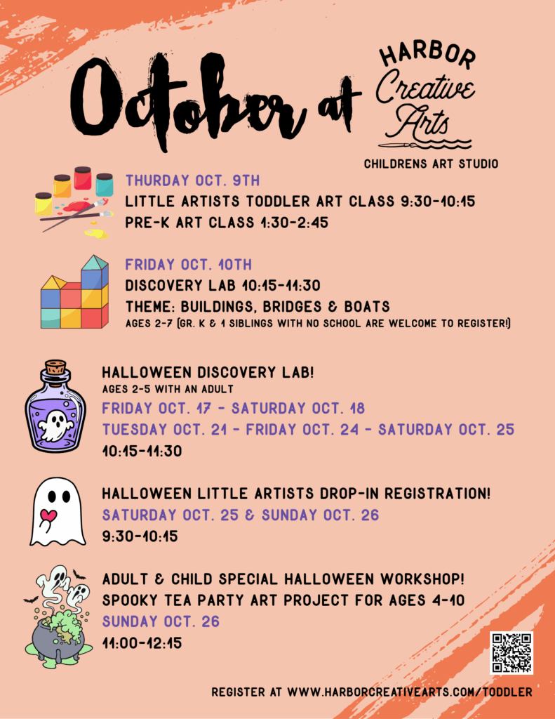 –I heard HCA Halloween programs are awesome! When are they? Due to popularity, we are including our special Halloween projects in our weekly classes. Additional sessions will be added as well.